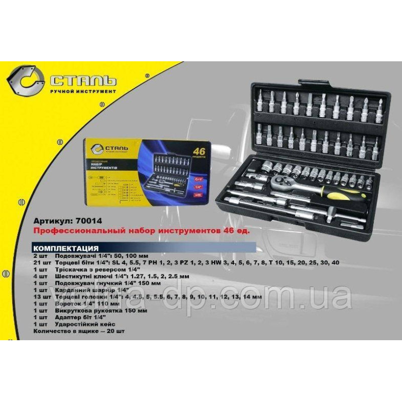 Опис Набір інструменту 46 од. Сталь