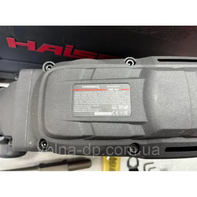 Відбійний молоток HAISSER HM-60 має гарну потужність двигуна 2200 Вт і велику силу удару 60 Дж. Додаткова передня ручка може повертатися на 3600 для зручності в роботі. Обладнаний системою SDS-HEX30 для швидкої та зручної заміни бура.