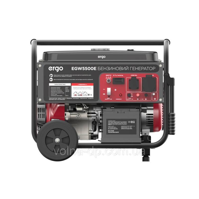 Бензиновий генератор ERGO EGW5500E – модель, що вирізняється підвищеною потужністю й завдяки цьому здатна вирішувати широке коло завдань з організації резервного автономного електрозабезпечення.