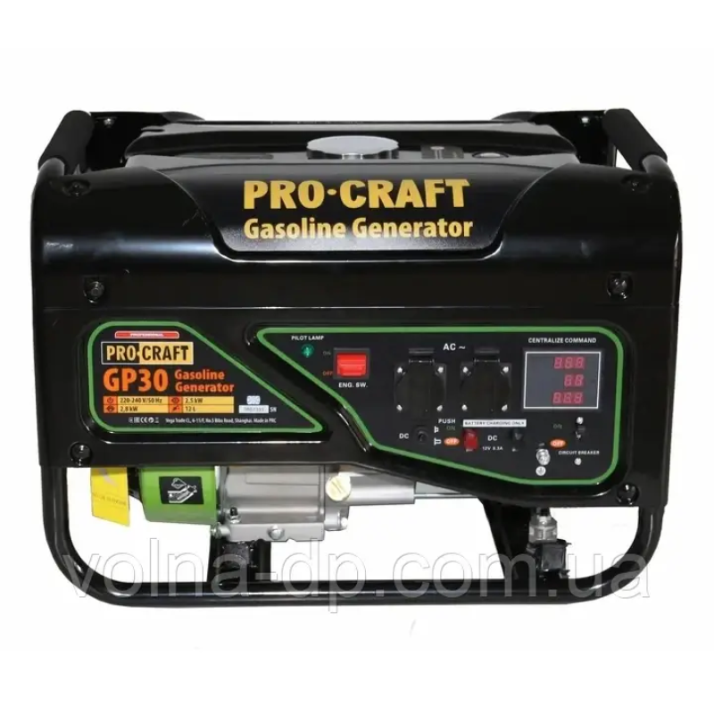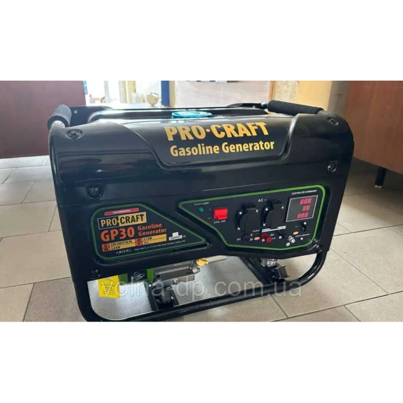 Бензиновий генератор Procraft GP30 потужністю 2.8 кВт для освітлення невеликого приватного будинку, а також одночасного підключення кількох електроприладів залежно від пускової потужності, підходить для побутового та комерційного використання.