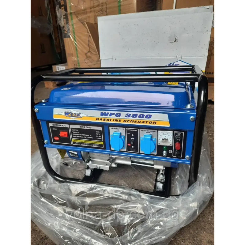 Однофазний бензогенератор Werk WPG 3800 — професійного класу апарат, призначений для використання як основного, так додаткового джерела живлення різних споживачів струму.