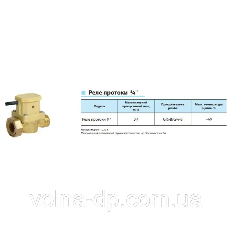 Реле протоку ¾ "призначено для включення і відключення електронасосів при наявності або відсутності протоку рідини.
