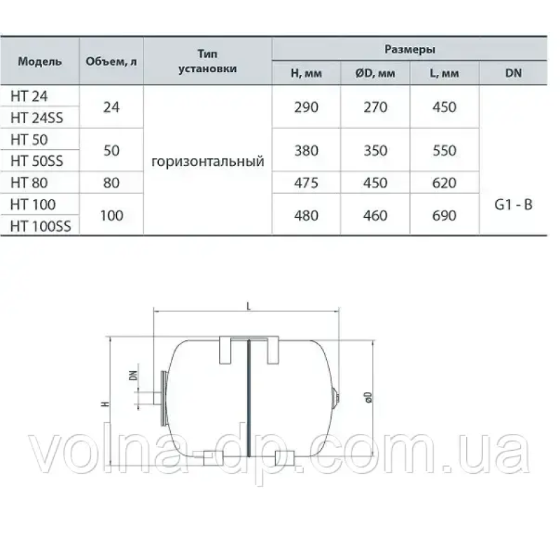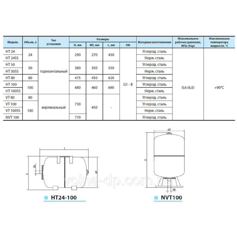 Гидроаккумулятор Насосы плюс оборудование HT 100 обеспечивает давление в системе водоснабжения, а также предохраняет и увеличивает срок службы насоса.