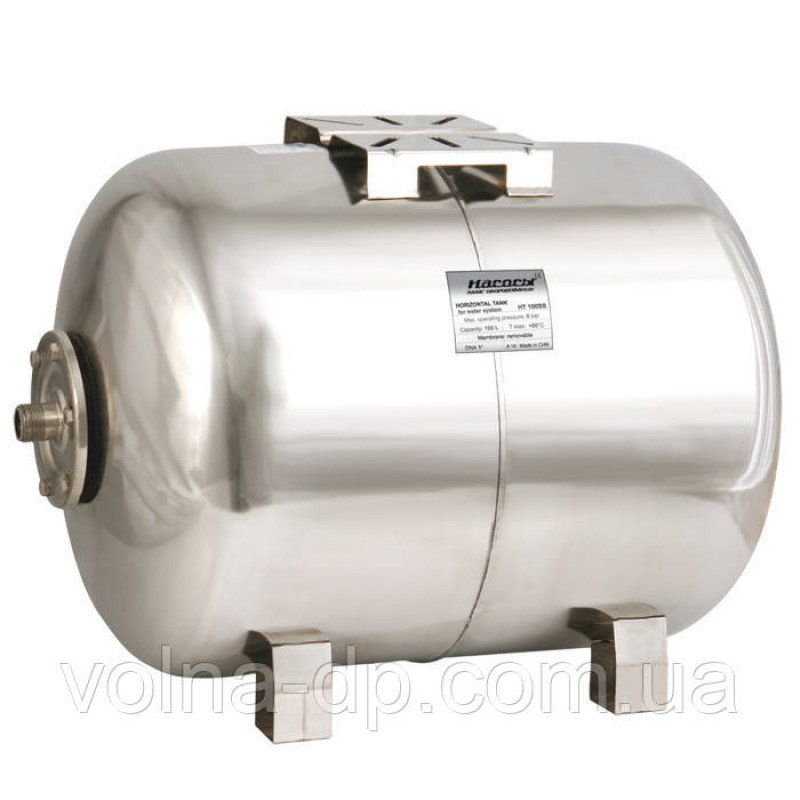 Гідроакумулятор "Насоси+" HT 100SS — надійне рішення для захисту систем із трубопроводом великої довжини, а також засіб продовження терміну експлуатації насосного обладнання. Ця модель належить до серії SS, всі гідроакумулятори якої відрізняються корпусом із неіржавкої сталі. Агрегат, що виглядає, являє собою горизонтальну конструкцію з баком об'ємом 100 л. Ви зможете успішно експлуатувати пристрій для роботи з водою температурою до 90 градусів Цельсія. У баку завжди зберігатиметься вода для безперервного її подавання навіть без електрики.