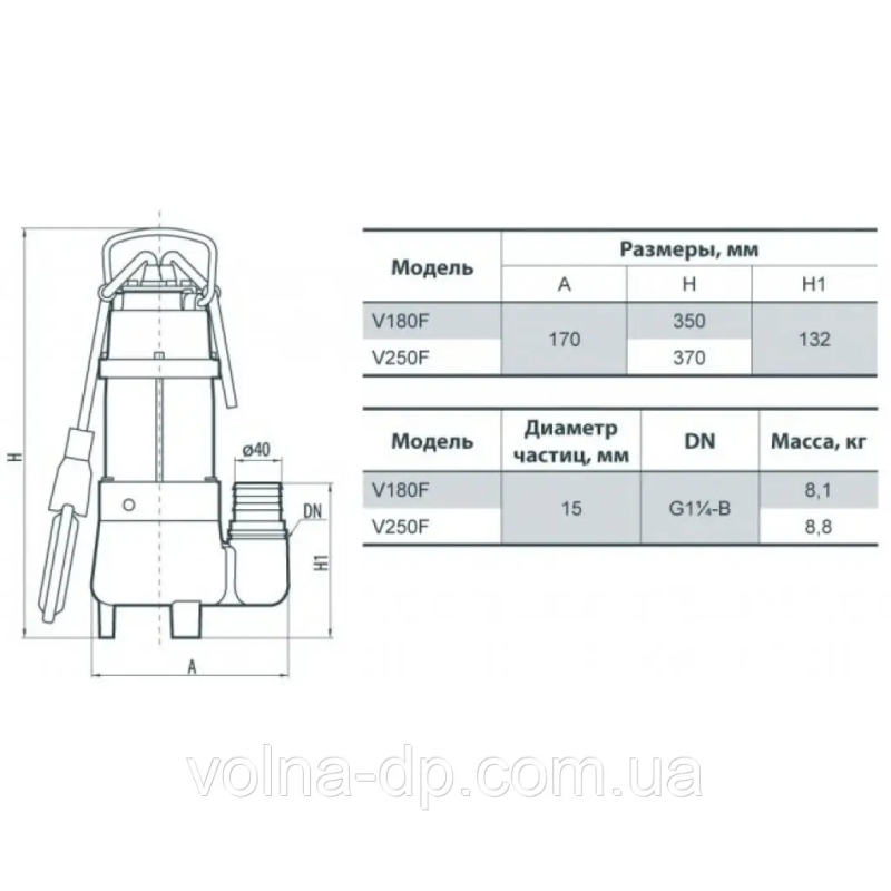 Дренажно-фекальний електронасос V180F призначений для відведення води із затоплюваних приміщень, перекачування біологічно не сильно забруднених рідин, стічних вод, відстояних каналізаційних вод, що містять колоїдні або олійні речовини, дощової та фільтраційної води, наповнення або осушення басейнів, ванн, водних циркуляції води в них, подавання води з неглибоких колодязів, цистерн і відкритих водойм для систем поливання в садівництві, сільському та лісовому господарстві там, де використовуються системи зрошення й поливання низького тиску.