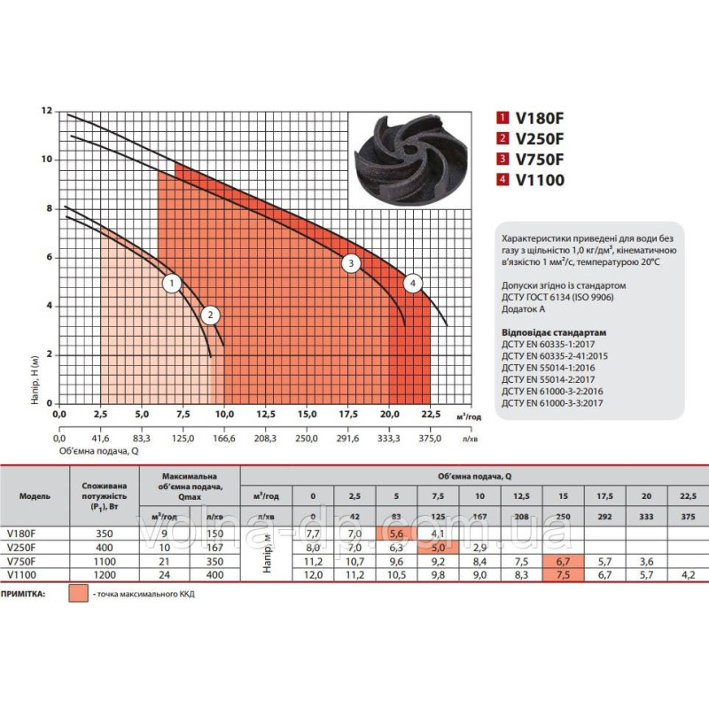 - Максимальне об'ємне подавання до 9 м3/год (150 л/хв)