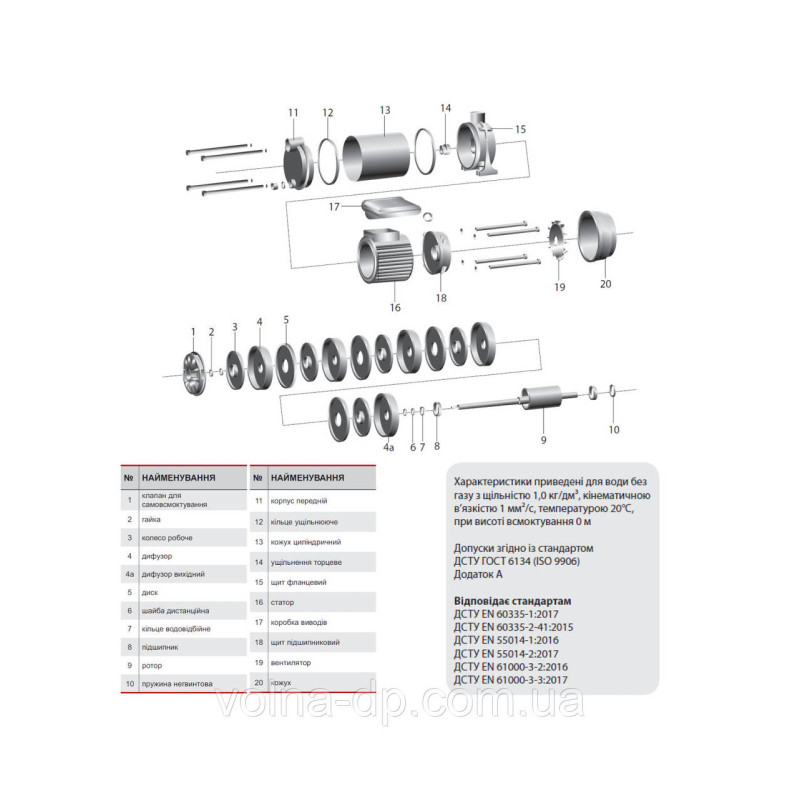 - перекачувальна рідина: вода або інші рідини, схожі з водою за щільністю та хімічною активністю