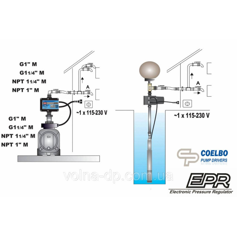Електронний контролер EPR Coelbo замінює звичайний електронний перемикач тиску та зменшення тиску. Запатентована сучасна технологія, яка використовується в ньому, має ефект, який можна порівняти з використанням інвертора. Тобто ми отримуємо постійний і стабільний вихідний тиск, захищаючи трубопровідну систему, насос і арматуру від гідравлічних ударів і непотрібного навантаження. Крім того, регулятор електронного тиску EPR Coelbo забезпечує захист від сухого ходу з автоматичним перезапуском насоса та має систему антиблокування насоса. На відміну від інвертора, який має досить високу ціну, контролер EPR цілком доступний для використання в сегменті домогосподарства, для якого він був створений