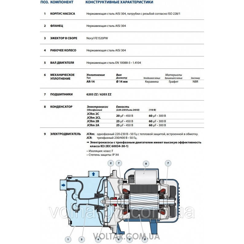 Конструктивні характеристики насоса PEDROLLO JCRm/2A:
