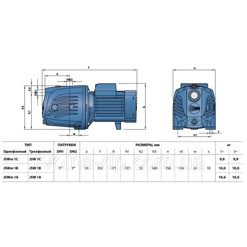 JSWm: однофазний 230 В – 50 Гц з конденсатором і теплової захистом, вбудованою в обмотку.