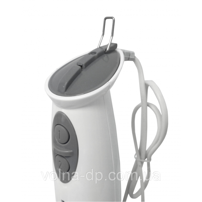 Потужність пристрою становить 600 Вт. Цього досить, щоб гострі леза за лічені секунди перетворили повноцінні інгредієнти на однорідну масу. Ручка виробу має ергономічну форму, вона зручно лягає в руку, не вислизає навіть із мокрої долоні.