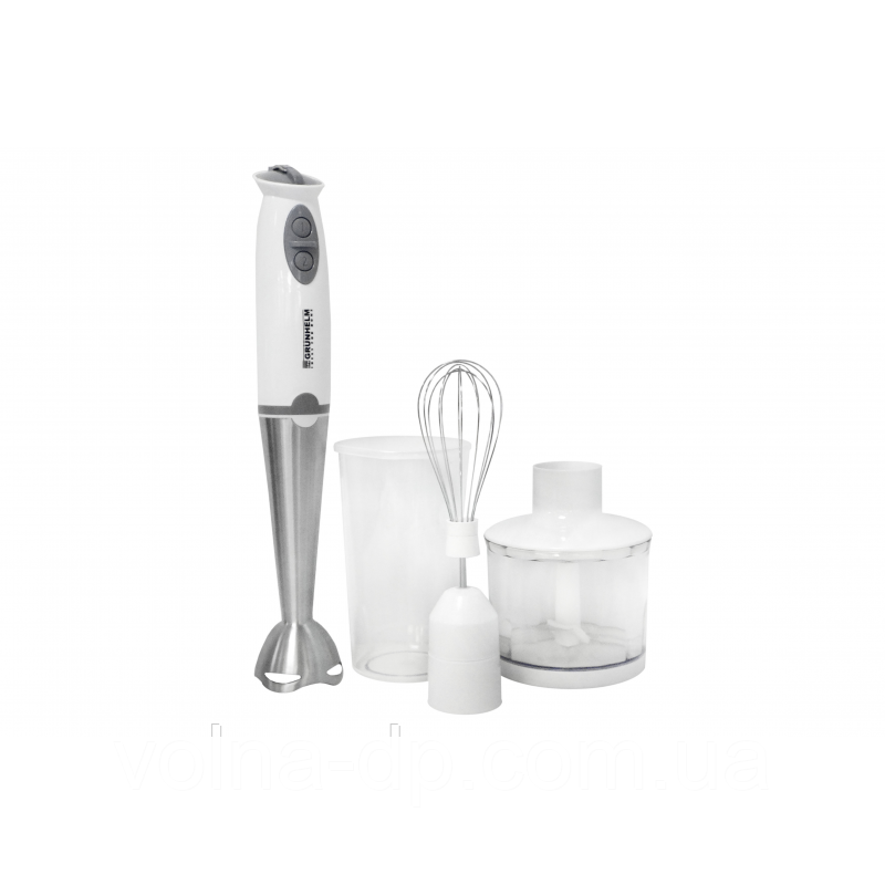 Модель Grunhelm EBS-600SS, являє собою компактне обладнання, яке легко впорається з будь-яким типом оброблення продуктів. З його допомогою Ви швидко приготуєте свій улюблений коктейль, перемелите м'ясо в фарш, збийте яйця, приготуєте смачний соус або домашній майонез. Завдяки ніжці блендера з неіржавкої сталі, його сміливо можна занурювати в гарячі продукти.