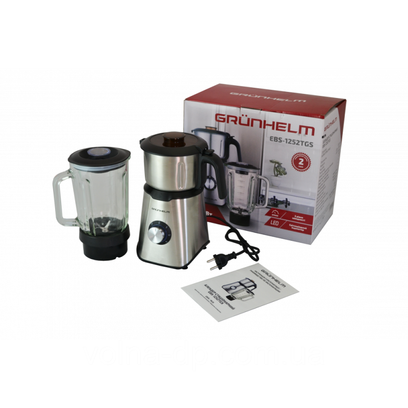 Grunhelm EBS-1252TGS – це універсальне рішення найскладніших проблем, з якими ви можете зіткнутися на кухні. Такий девайс здатний не тільки урізноманітнити ваш денний раціон, але і якісно поправите своє здоров'я, зміцните імунітет і приведете мікрофлору в порядок. Такий девайс має містку чаші 1,5 л, завдяки тому, що вона виконана зі скла - їй не страшні ні гарячі, ні холодні температури. будьте впевнені, що чаша не трісне навіть якщо буде різкий перепад темп Grunhelm EBS-1252TGS потужність девайса дорівнює 1200 Вт, що дозволяє вам використовувати його кожен день, без страху, що він перегрееться і вимкнутися. Завдяки гумовим ніжкам він стійкий і не зрушиться з місця під час подрібнення. Вам доступні три швидкості роботи. Подрібнення здійснюється завдяки ножам, вони виконані зі сталі, вони довгий час залишаються гострими, незважаючи на постійне вплив фруктових кислот. Також вони не гнутися й не загинаються. Завдяки таким ножам, ви можете подрібнити як м'які, так і тверді фрукти, різноманітні по щільності овочі. Сам блендер дуже невибагливий у догляді і не вимагає додаткових вкладень - просто сполосніть чашу під проточною водою використовуючи миючий засіб і готово.