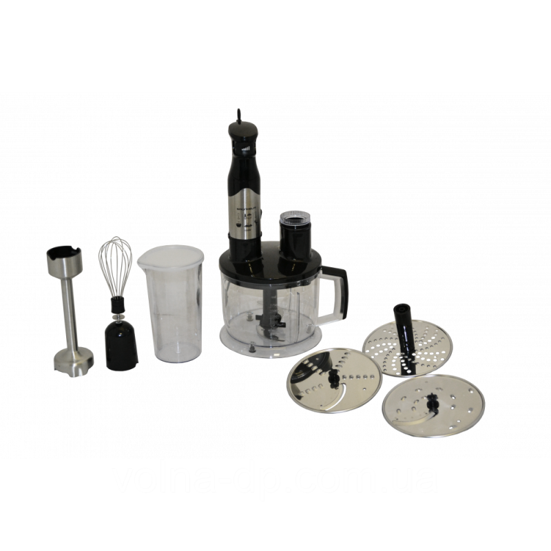 | Комплектація | Блендер Гострі чотирипелюсткові ножі Чаша з подрібнювачем Мірний стакан 0.6 л Вінчик із неіржавкої сталі Ти диска для грубої та дрібної нарізки та подрібнення овочів і фруктів Тискель Інструкція |