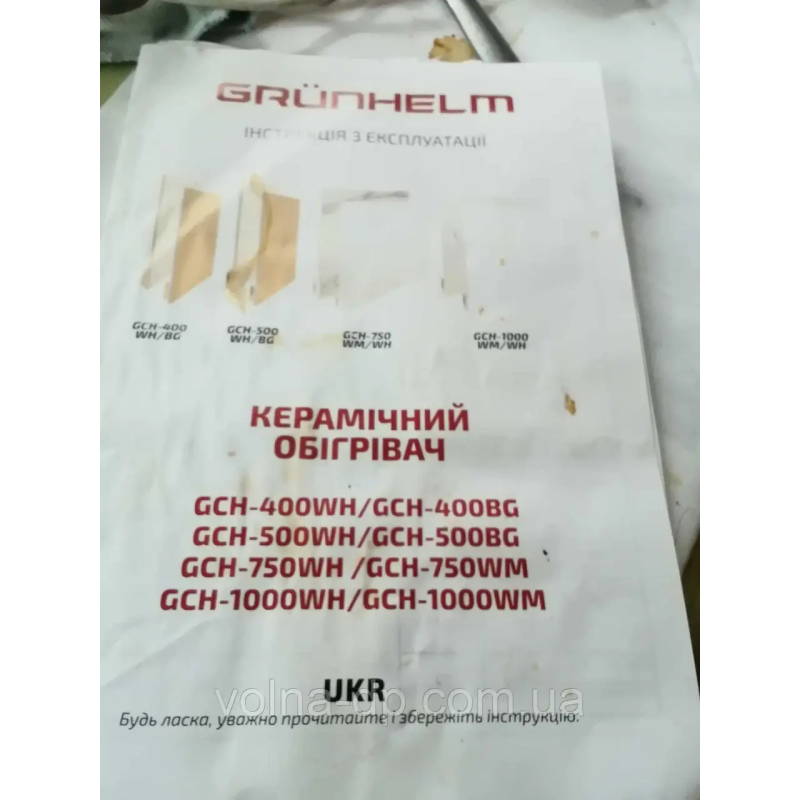 Нагрівач Grunhelm GCH-1000 WM — з потужністю 1000 Вт і вбудованим регулятором. Вбудований у нагрівач терморегулятор дає змогу керувати температурою й ефективно забезпечувати обігрівання приміщення.