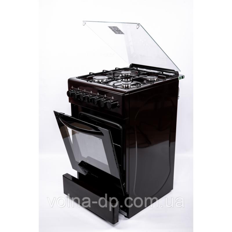 Плита має відділення для посуду у вигляді висувного ящика та кришку із загартованого скла.