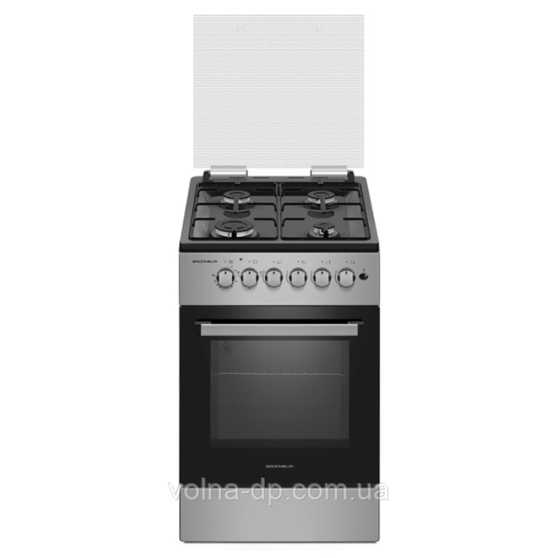 Плита газоелектрична Grunhelm – модель комплектується функцією газ контролю, тому використання цієї моделі буде максимально безпечним та комфортним. На варильній панелі передбачено 4 інноваційні газові конфорки різних розмірів – для комфортного та рівномірного нагріву посуду різних об'ємів та діаметрів днища. Потужність газового потоку та полум'я регулюють поворотні ручки на передній панелі плити.