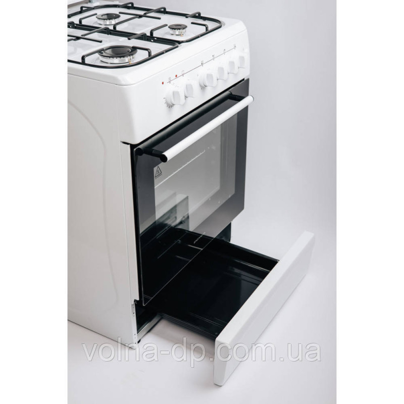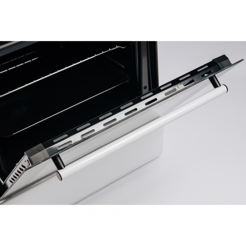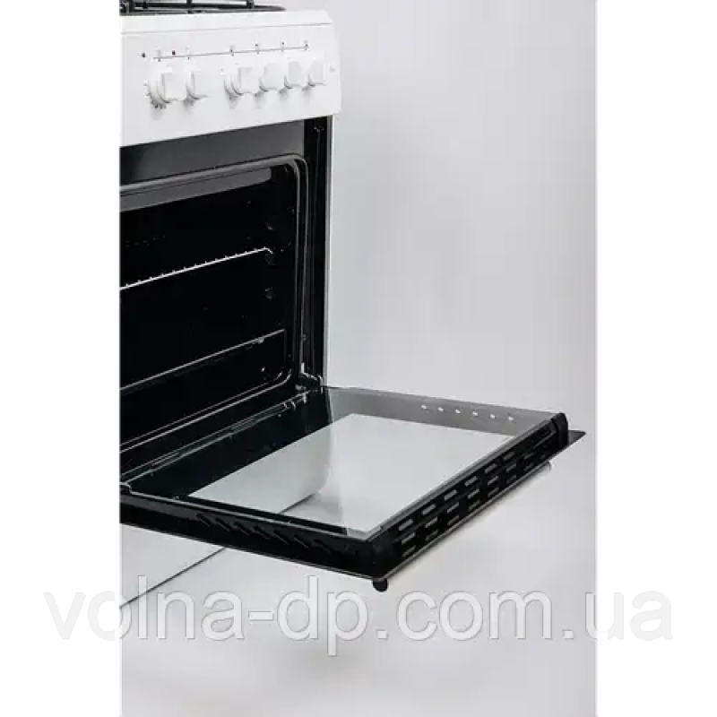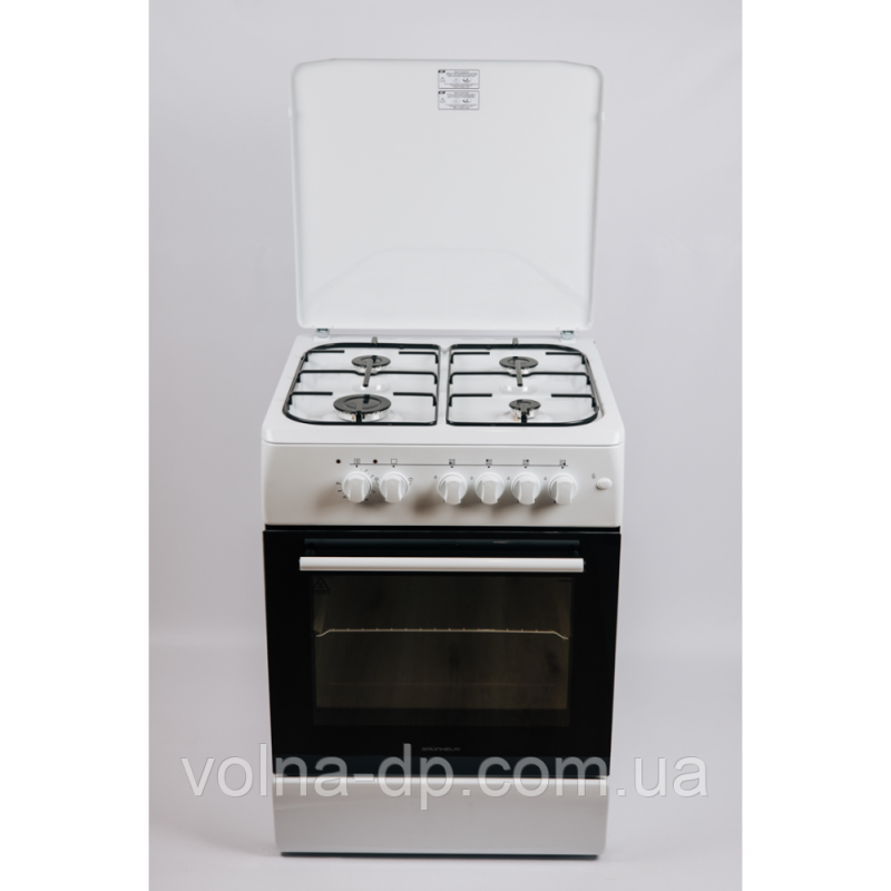 Плита кухонна GRUNHELM АM6611W :: 4 газ.конфорки з газконтролем та підпалом; електродуховка 70л. с подсветкой; емаль легкого очищення; металева кришка; висувний ящик; ш60*г59*в85см.; біла; дизайн ATLASLINE (GRUNHELM)