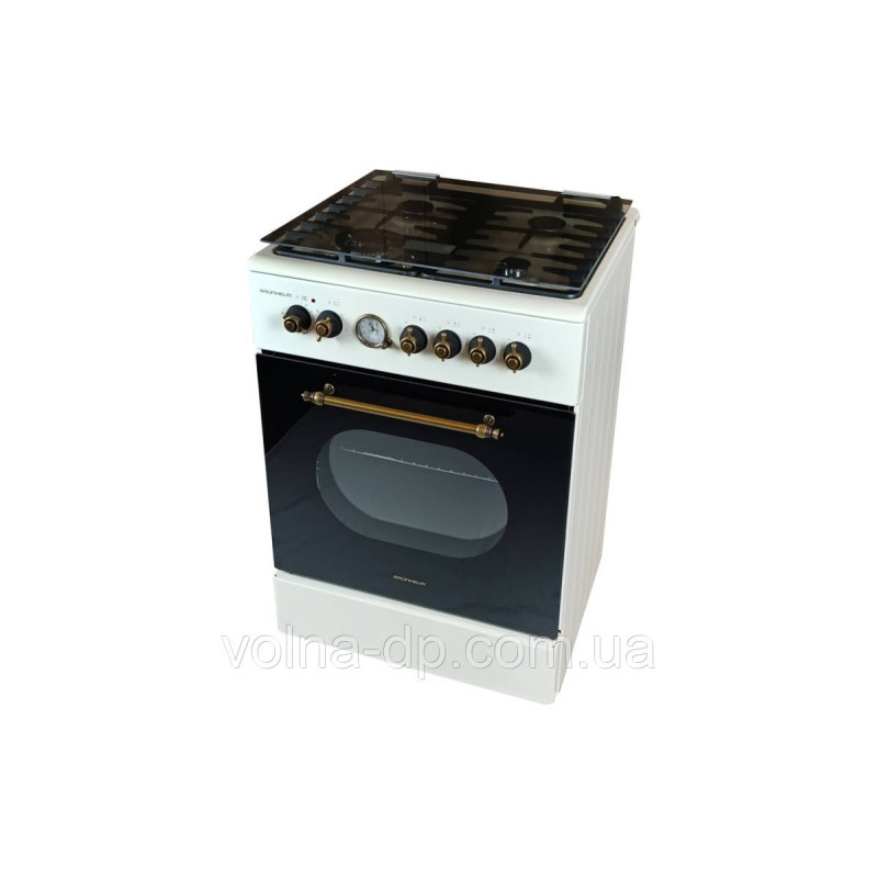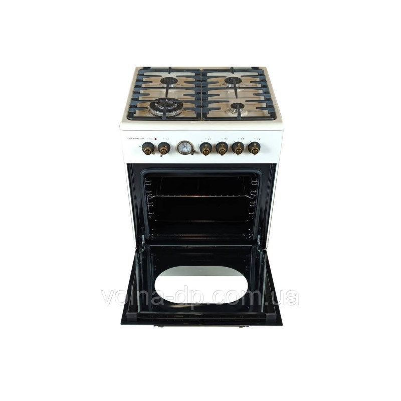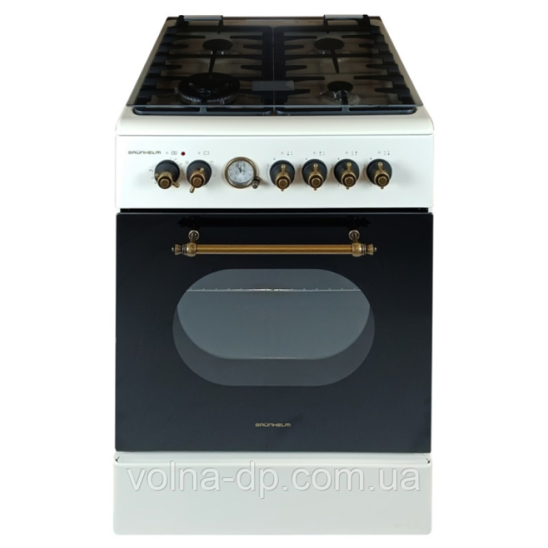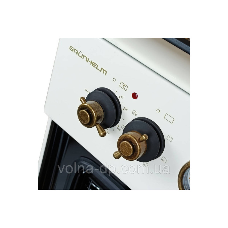Плита газоелектрична Grunhelm FDR661234BE Бежева – модель комплектується функцією газ контролю, тому використання цієї моделі буде максимально безпечним та комфортним. На варильній панелі передбачено 4 інноваційні конфорки різних розмірів – для комфортного та рівномірного нагріву посуду різних об'ємів та діаметрів днища. Потужність газового потоку та полум'я регулюють поворотні ручки на передній панелі плити.