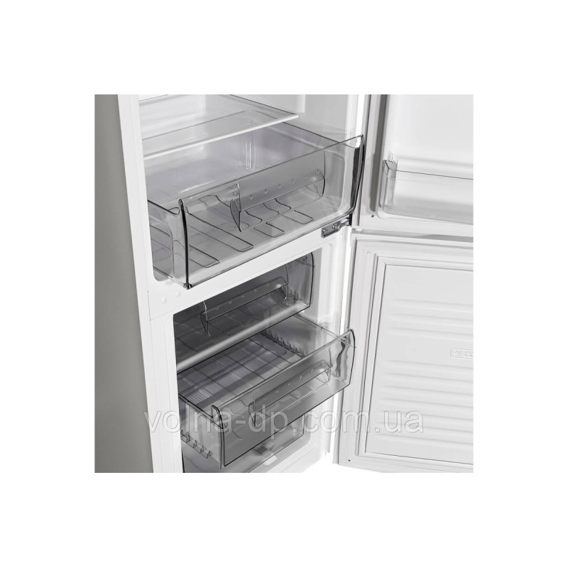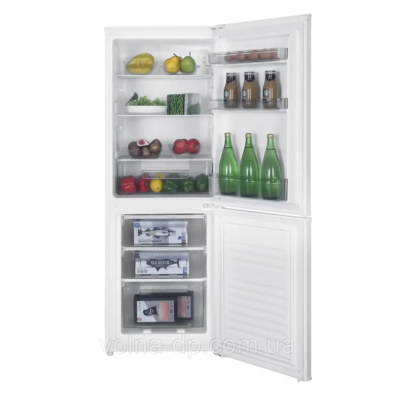 Холодильник BRH-S151E57W Grunhelm - двокамерний холодильник класу А+, з високим класом енергоефективності та загальним об'ємом 204 л. Морозильна камера на 65 л знаходиться знизу та оснащена 3 ящиками. У холодильній камері 3 полиці, 1 лоток для овочів та фруктів, у двері 3 полиці. Холодильник виконаний із якісної нержавіючої сталі з покриттям проти відбитків пальців, його легко мити і він простий у обслуговуванні. У холодильника Grunhelm встановлено систему De-frost. Холодильник не потребує розморожування.