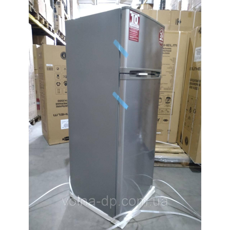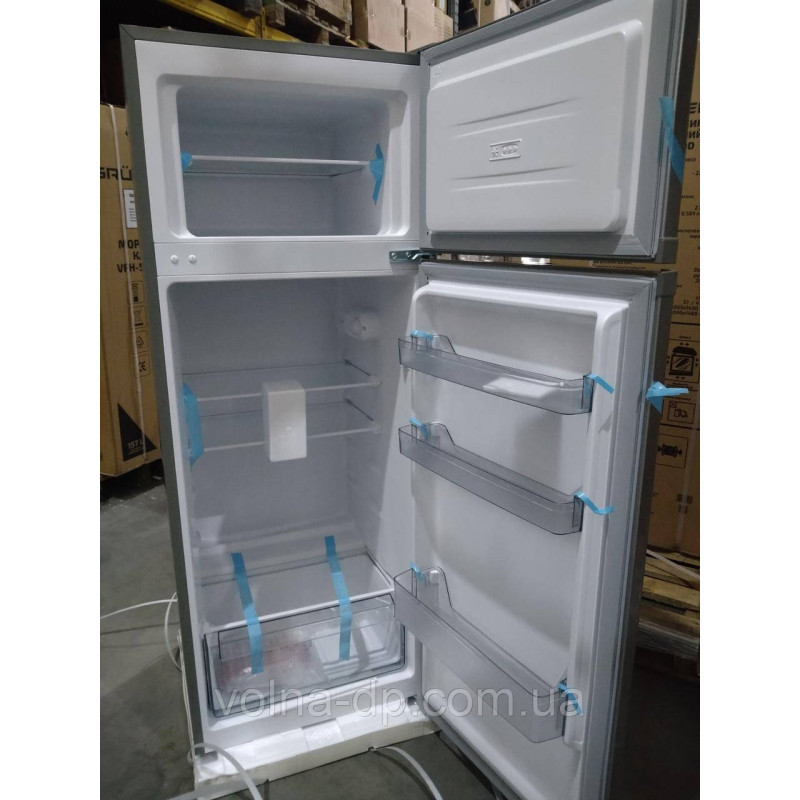 Холодильник GRUNHELM GRW-143SDD з двома камерами керується механічно, а система розморожування статична. Загальний обсяг холодильника 205 л. У морозильній камері 2 відділення. У холодильній камері розміщено 2 полиці. Для овочів є 1 контейнер. Має вбудовані ніжки та вбудовану ручку. По всій камері відбувається рівномірний розподіл температури стінки з підвищеною термоізоляцією завдяки поліуретановому покриттю. Вироблено на потужностях найкращого китайського заводу No1 за експортом холодильної техніки.