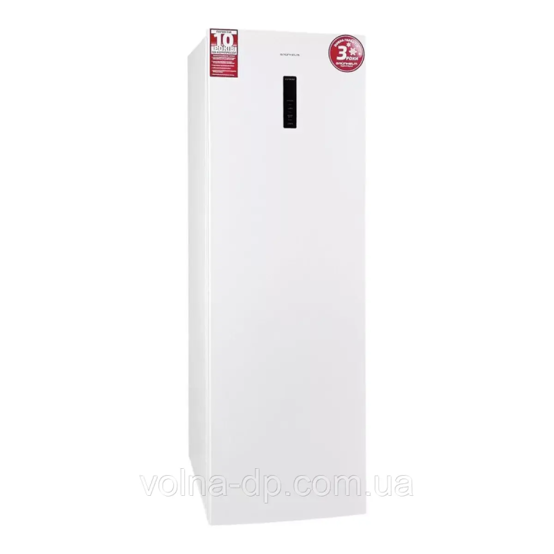 Морозильна камера VFH-N185D70W Grunhelm — вертикальна морозильна камера з потужністю заморожування 17 кг/добу. У камері 4 об'ємні секції, корисний об'єм 274 л. Панель керування — електронна.