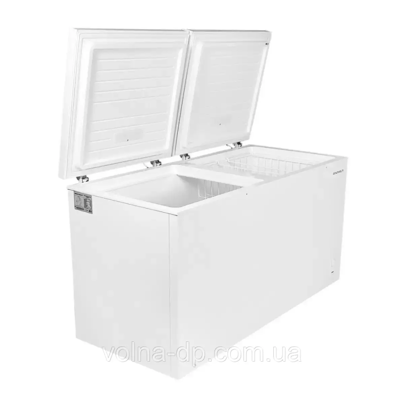 Морозильна скриня CFM-500 GRUNHELM часто використовують як у підприємницькій діяльності: магазини, кафе, ресторани, так і в побутовій, для зберігання їжі. Вона з легкістю заморозить м'ясо, птицю, рибу та різні овочі, фрукти та ягоди. Вона також ідеально підійде для охолодження напоїв. Ця модель має дві верхні дверцята.