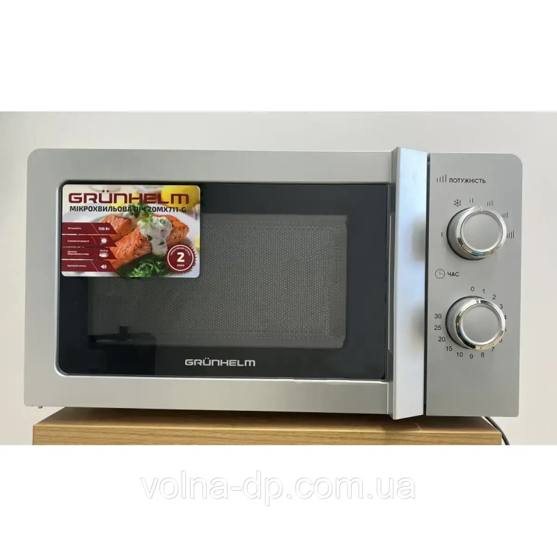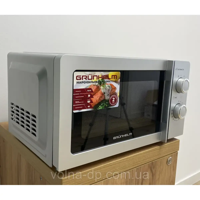 Мікрохвильова піч Grunhelm 20MX711 – ідеальний помічник для повсякденного використання у вашій кухні. Потужність 700Вт призначена для розігріву та розморожування харчових продуктів, виберіть той рівень потужності, який відповідає вашим потребам – залежно від того, скільки їжі ви нагріваєте та якої температури вона має бути після нагрівання.