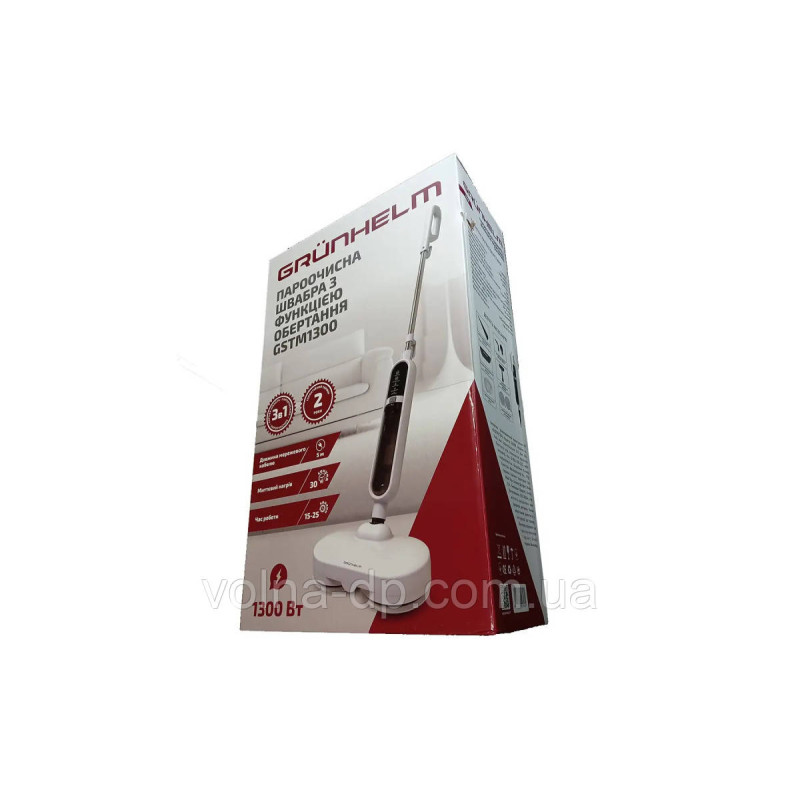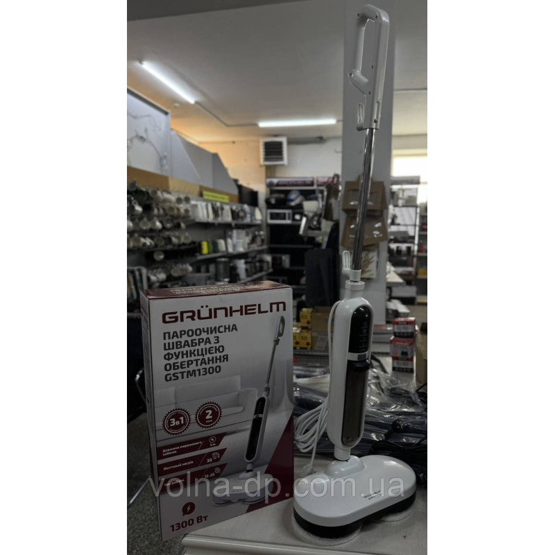 Парова швабра GSTM1300 з функцією обертання 1300 Вт Grunhelm зручний в роботі ручний пароочисник з комплектом 9 аксесуарів для прибирання.