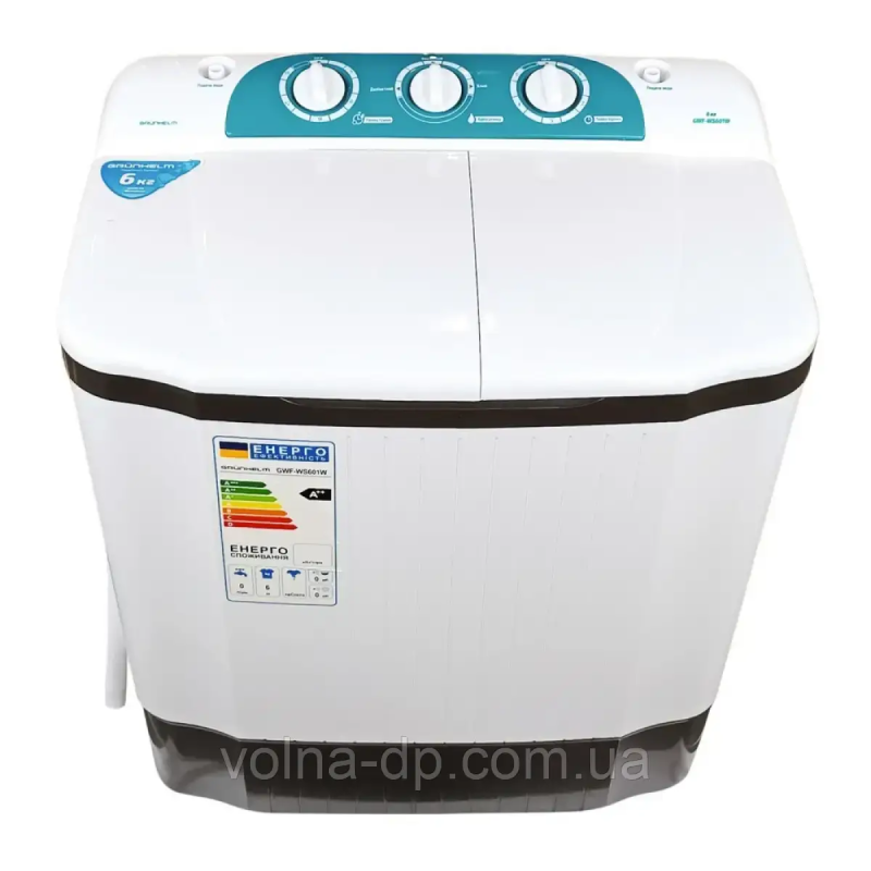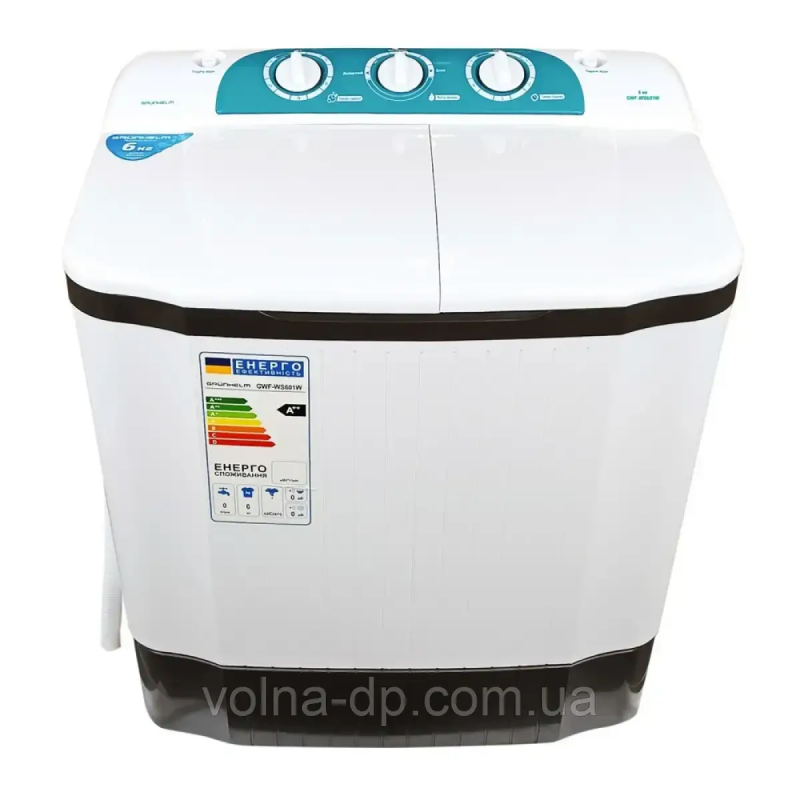 Пральна машина GWF-WS601W Grunhelm — якісна напівавтоматична модель із верхнім завантаженням білизни. Вона стане Вашим незамінним помічником і істотно заощадить кількість води й електроенергії під час прання. Машинку можна використовувати без центрального водопостачання. Максимальна завантажувальна ємність — 6 кг білизни. Машинка виготовлена з якісного ABS-пластику