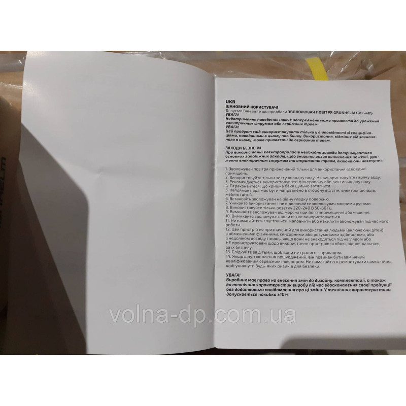 Опис Зволожувач повітря GRUNHELM GHF-40S