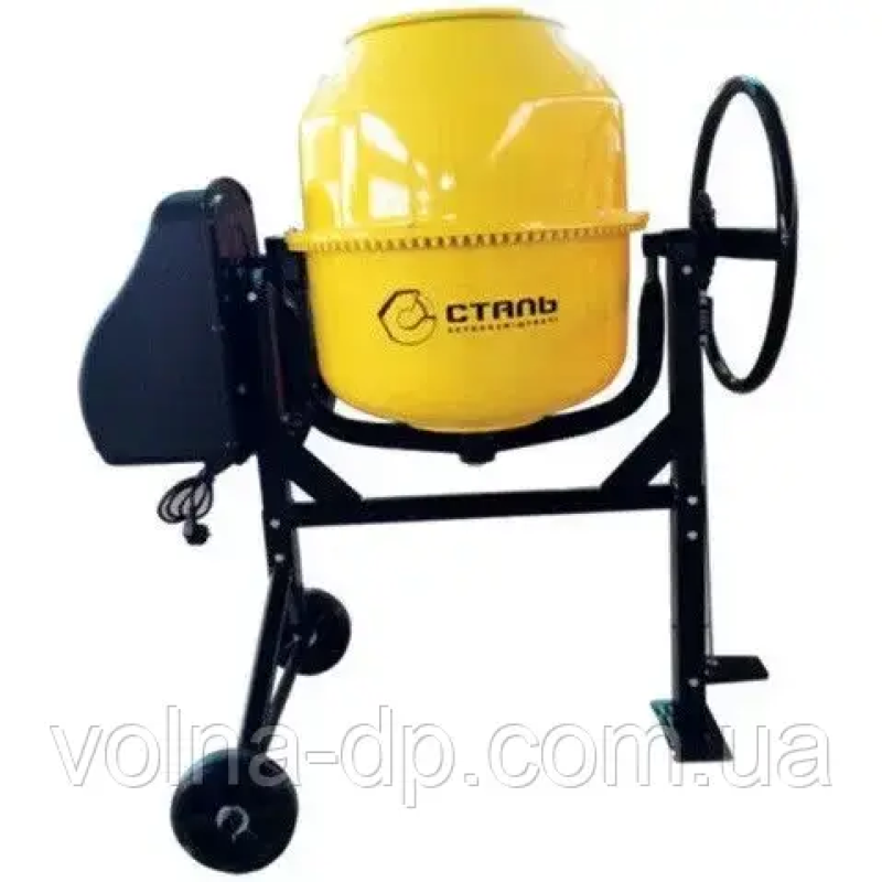 Виконана бетономішалка з ударостійкого металевого сплаву. Що ж стосується вінця і редуктора, то вони виготовлені з міцного чавуну, завдяки чому досягається висока міцність, надійність і безпека. Груша бетонозмішувача складається з двох частин, а тому в разі транспортування може з легкістю бути розібрана. Міцна сталева рама, що забезпечує достатню стійкість на будь-якій поверхні. Комфортному використанню сприяє спеціальне перекидаючий колесо типу «штурвал». Таке рішення дозволяє не тільки зі зручністю завантажувати і вивантажувати матеріал, але і повертати бак в обидві сторони і фіксувати його в потрібному положенні. Переваги: За один підхід бетонозмішувач здатний зробити до 120 л будівельного матеріалу. Це може бути бетон, гіпс, кладочний, штукатурний, клейовий, шпаклювальний або будь-який інший склад. Техніка оснащена чавунним вінцем, завдяки чому забезпечується тривала роботі техніки і якісна передача потужності при невеликому зносі. Можливість роботи на дві сторони, дозволяє використовувати техніку, більш раціонально