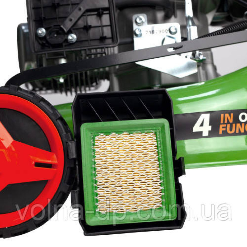 По-перше, вона має потужну потужність 3,3 кВт, достатню для того, щоб упорядкувати ваш сад за мінімальний час. Двигун газонокосарки працює на холостому ходу зі швидкістю 3000 обертів на хвилину, що дає їй можливість рівно й ефективно косити траву навіть у великих садах.