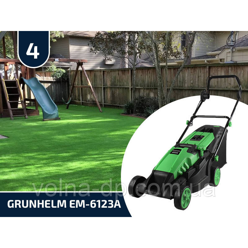 Grunhelm EM-6123A дане якісний механізм, який буде необхідним асистентом з метою власників досить величезний ділянки газону. Цей пристрій бути з метою чіткої стрижки трави з потрібною заввишки. Форма виконується, як високопрофесійний садовий механізм який може виносити великі перевантаження і тривалі діяльність. Ця форма розрізняється власної значною продуктивністю, з-за результат нинішніх набирає, якими обладнана цей пристрій. Механізм зроблений якісний корпус, який тихо перенесе машинні дефекту, внаслідок чого пристрій прослужить Для вас тривалий період. Електрична газонокосарка Grunhelm EM-6123A містить добре обдуманий зручний проектування і нескладність в експлуатації, внаслідок чого впоратися з пристроєм може абсолютно будь-який юзер, таким чином одно як электрогазонокосилка ніяк не вимагатиме той чи інший або технологічного сервісу, досить під'єднати апарат до розетки, і ви зможете починати до праці. Період безоплатного поручительного обслуговування з метою цієї модифікації є 12 місяця, що свідчить про рішучість виробника у власному приладі.
