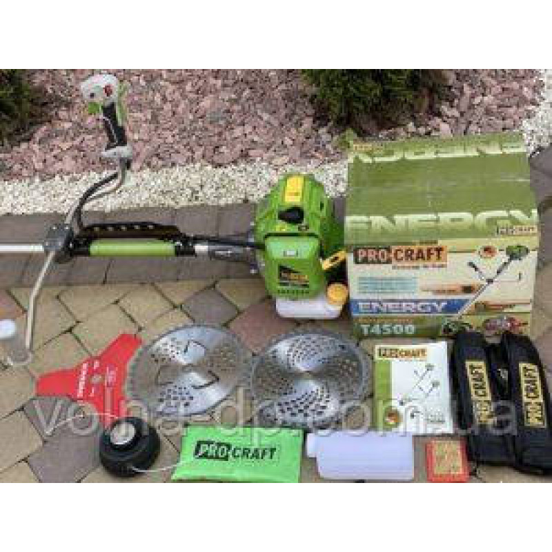 Бензокоса Procraft T4500 NEW — це професійний прилад, який можна використовувати в побутових і виробничих роботах. Корпус виготовлений із міцного пластику та доповнений захисним покриттям. Спеціальні отвори для охолодження запобігають перегріванню інструмента.