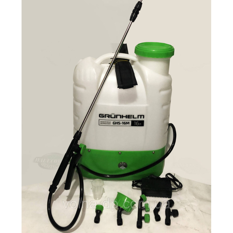 Обприскувач акумуляторний Grunhelm GHS-16M — сучасний апарат, призначений для боротьби зі шкідниками, бур'янами та хворобами рослин. Призначений для використання як на маленьких присадибних ділянках, так і в професійних цілях на великих площах.