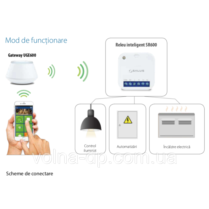 Виконавче реле Salus SR600 - це перемикаючий реле, яке дозволяє включати або вимикати різні електричні прилади потужністю до 3500 Вт (16 А при 220 В). Реле можна встановити в подрозеточную коробку, або окремо. Пристрій використовуйте разом з універсальним шлюзом інтернету (UGE600 - продається окремо!) і додатком для Розумного Будинку – SALUS Smart Home.