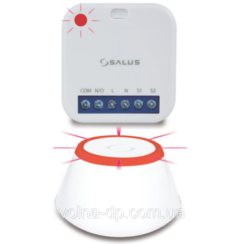 Виконавче реле - це перемикаючий реле, яке дозволяє включати або вимикати різні електричні прилади потужністю до 3500 Вт (16 А при 220 В). Реле можна встановити в подрозеточную коробку, або окремо. Пристрій використовуйте разом з універсальним шлюзом інтернету (UGE600 - продається окремо!) і додатком для Розумного Будинку – SALUS Smart Home.