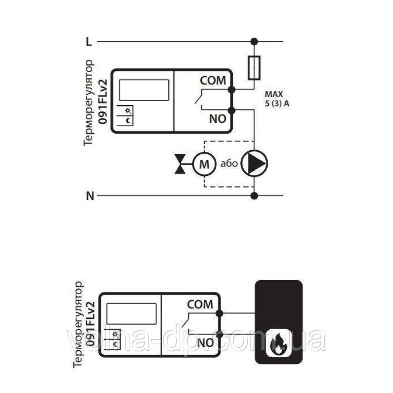 Електропрограмований регулятор температури (термостат) 091FLV2 використовується, щоб увімкнути або вимкнути систему опалення (охолодження) (котел, насос, сервопривод і т.д.) Зміна температури повітря в охолодженому приміщенні. Його робота полягає в контролюванні температури повітря у обігріванні (охолодженому) приміщення згідно з серією налаштувань. Перевага: