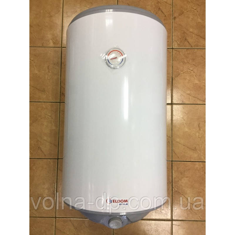 Вертикальний водонагрівач Eldom Style 72270WG 100 літрів об'єму. Один з них є нагрівальним елементом потужністю 2 кВт і механічним регулятором температури, розташованим у нижній частині водонагрівача. Світловий індикатор яскравого кольору сигналізує про роботу водонагрівача.